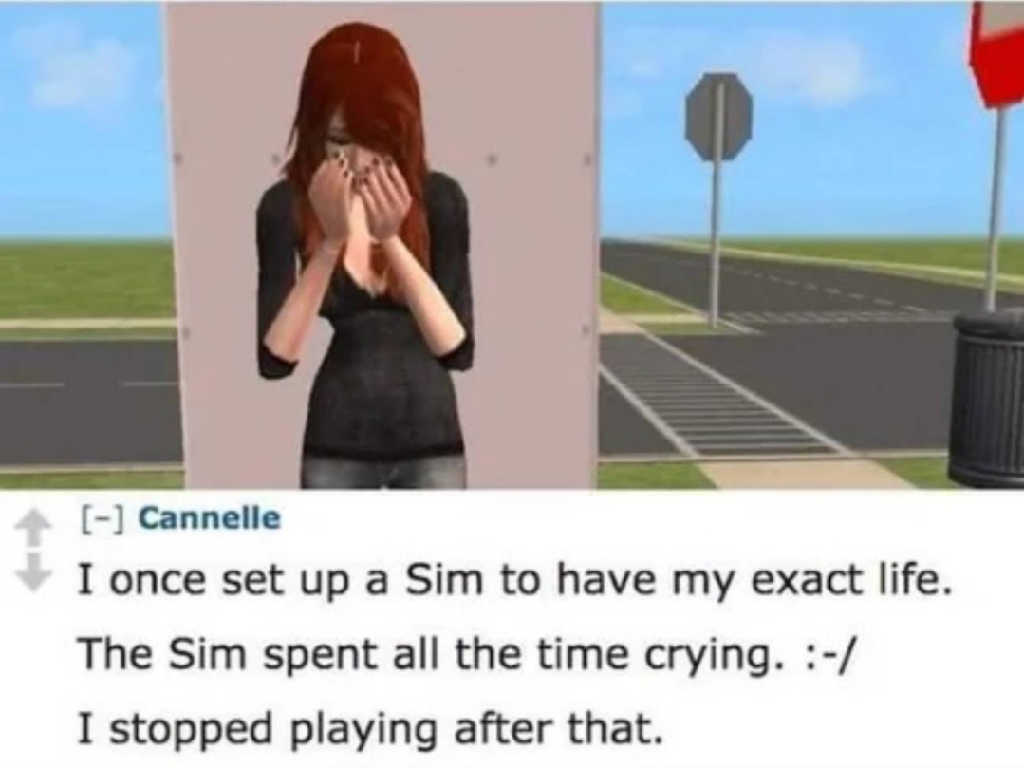 I once set up a Sim to have my exact life. The Sim spent all the time crying. :-/ I stopped playing after that.