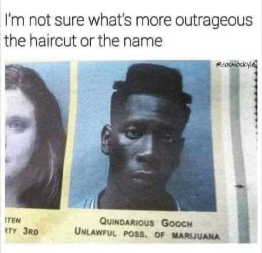 I'm not sure what's more outrageous the haircut or the name. QUINDARIOUS GOOCH. UNLAWFUL POSS. OF MARIJUANA