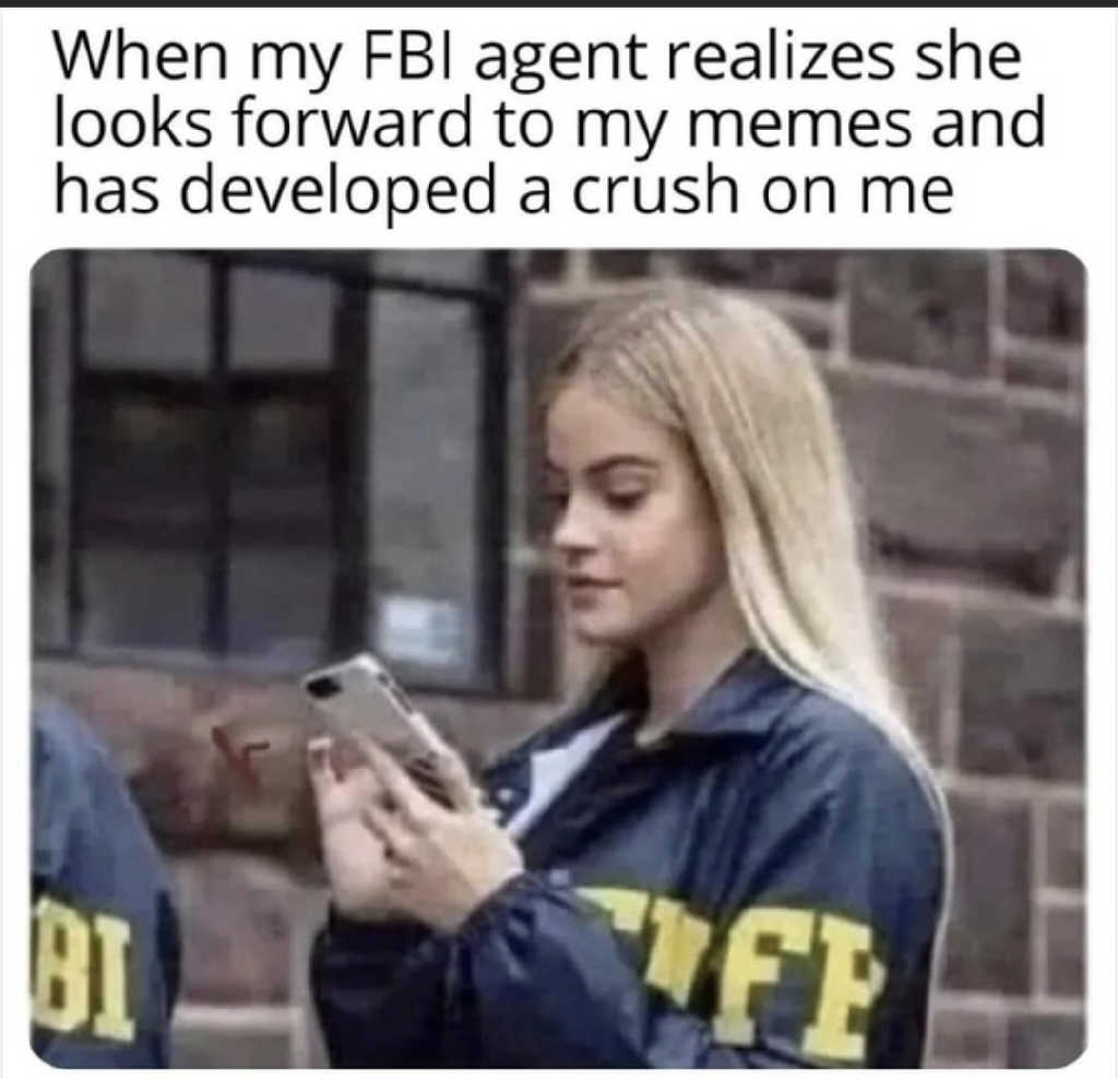 When my FBI agent realizes she looks forward to my memes and has developed a crush on me