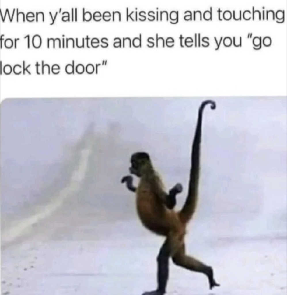 When y'all been kissing and touching for 10 minutes and she tells you "go lock the door"